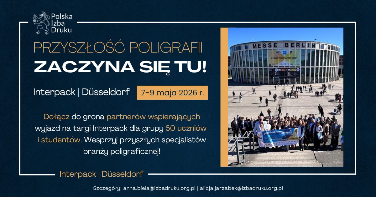 Polska Izba Druku, we współpracy z partnerami branżowymi, zorganizuje wyjazd edukacyjny dla grupy około 50 uczniów i studentów kierunków związanych z poligrafią, opakowaniami oraz technologiami produkcyjnymi na targi Interpack w Düsseldorfie.