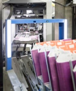 Nowy, materiałooszczędny system transportu folii doprowadza przygotowany wcześniej kaptur foliowy do linii pakującej. W drodze do głowicy refująco-rozciągającej zgrzeina kaptura foliowego schładza się, dzięki czemu kaptur może być refowany bez straty czasu. Pozwala to zrezygnować z energochłonnego systemu chłodzenia obniżającego wydajność instalacji. „Możemy szybko przestawić BEUMER stretch hood A na różne typy folii” – mówi Sielemann – zwiększa to elastyczność całej linii. „Przetwarzamy od 50 do 60 palet na godzinę” – cieszy się Josef Sennhauser: „W razie potrzeby możliwy jest dalszy wzrost wydajności”.