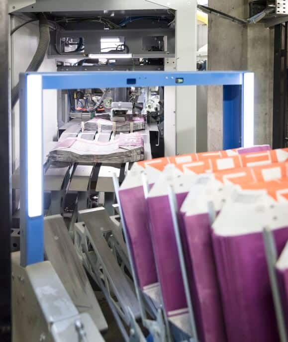 Gotowe stosy worków docierają po torach rolkowych do linii pakującej BEUMER stretch hood A. „Jest ona szczególnie łatwa i bezpieczna w obsłudze” – opisuje Sielemann. Aby ułatwić pracę personelowi konserwacyjnemu i zapewnić wysoką dyspozycyjność urządzenia, nowa linia pakująca nie posiada pomostu. Prace konserwacyjne, takie jak wymiana narzędzi skrawających lub listwy zgrzewającej, są przeprowadzane na poziomie podłoża. Kolejną zaletą jest kompaktowa konstrukcja i niewielka wysokość zabudowy.
