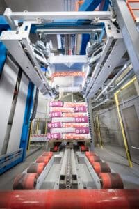 Na końcu linii pracownik zdejmuje po kolei opakowane palety z toru rolkowego za pomocą wózka widłowego i transportuje je do stanowiska wyjścia towaru. Tam są one przechowywane gotowe do odbioru. Największe wyzwanie w tym projekcie: „Linię pakującą należało zaprojektować w obrębie istniejących budynków na trzech różnych poziomach” – mówi Sielemann. Ale z tym poradzili sobie doświadczenie specjaliści z BEUMER Group. Ponieważ inżynierowie mogą bez trudu dopasować urządzenia do wymagań konstrukcyjnych.