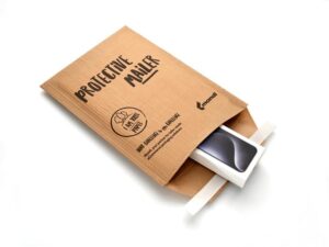re/cycle Protective Mailer: innowacyjna koperta wyściełana papierem do dostaw e-commerce. Zastępuje folię bąbelkową papierową wyściółką amortyzującą. Wykonana z mocnego, ale lekkiego papieru typu kraft, jest przeznaczona do recyklingu.